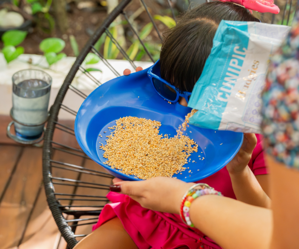 Fill up the My Birdseye Feeder with seeds and wait for your feathered fans to arrive